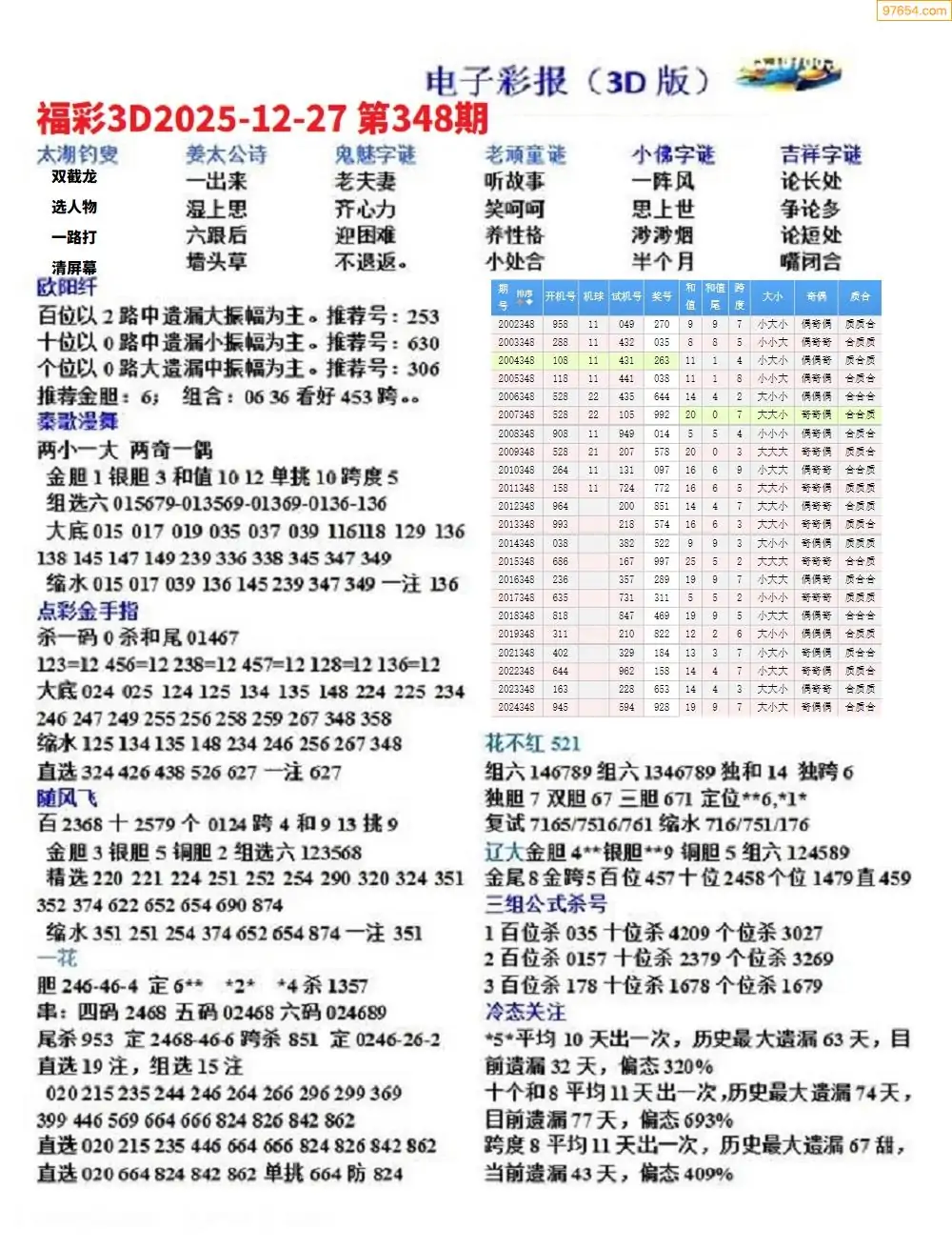 (3)2025348期3D预测总汇全图_福彩3d图谜字谜总汇