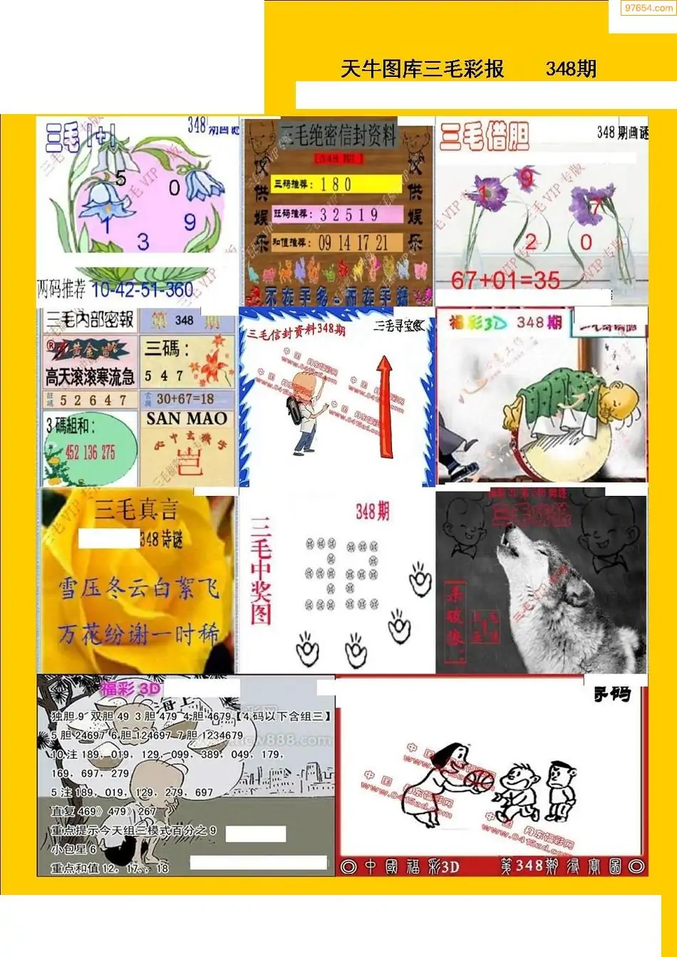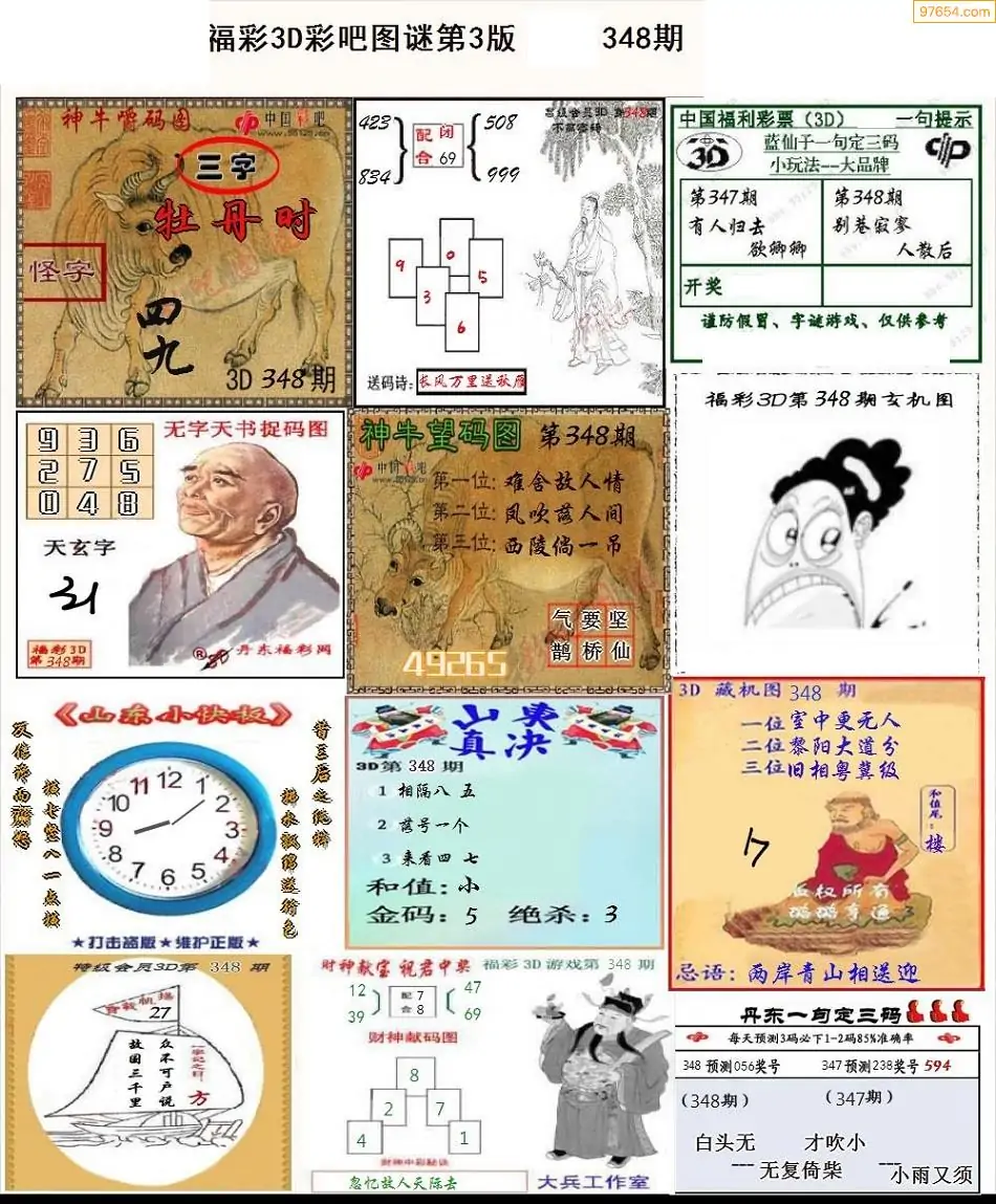 福彩3D348期天牛彩吧套图整合总汇