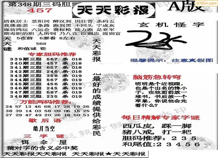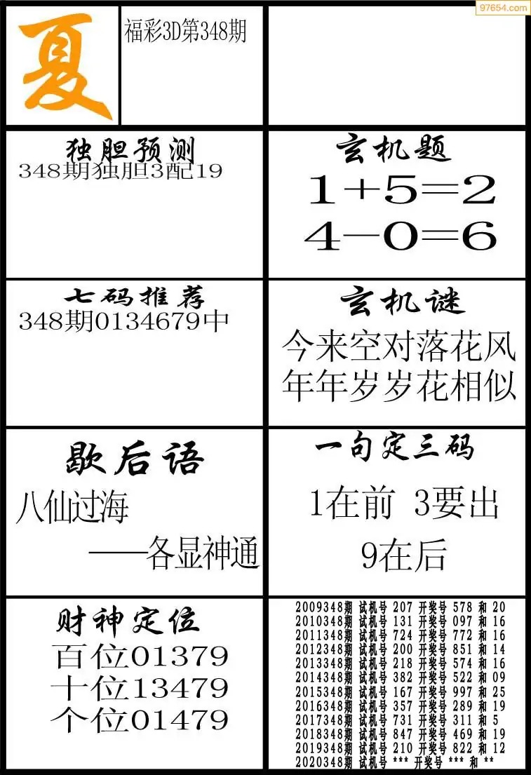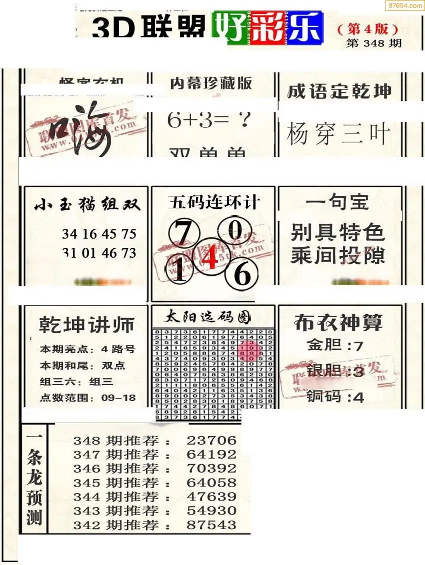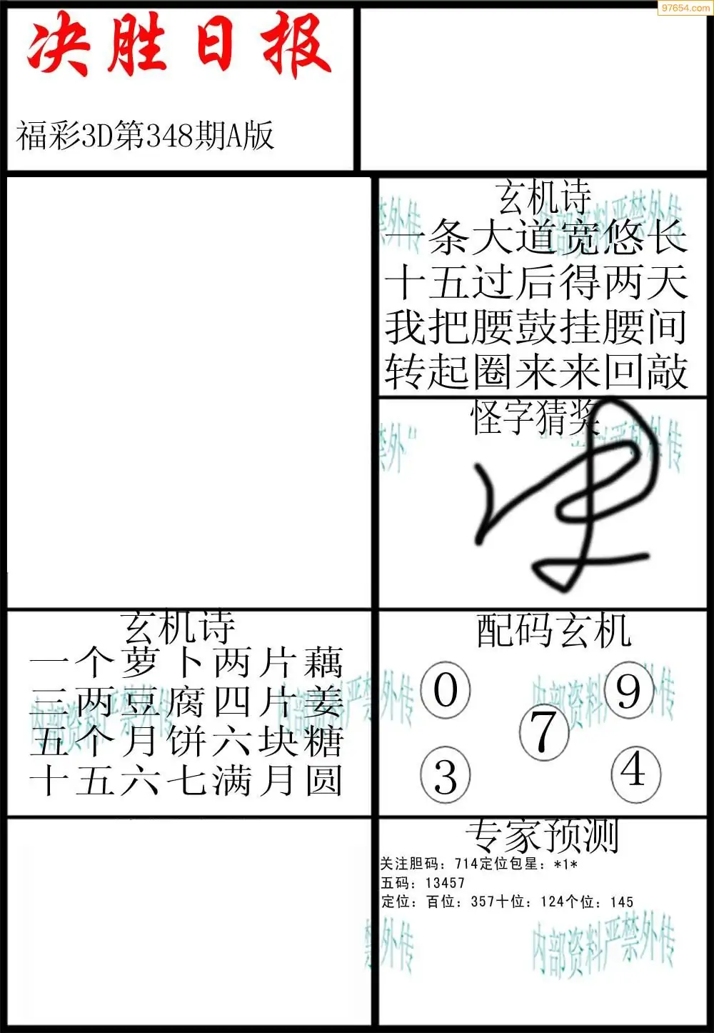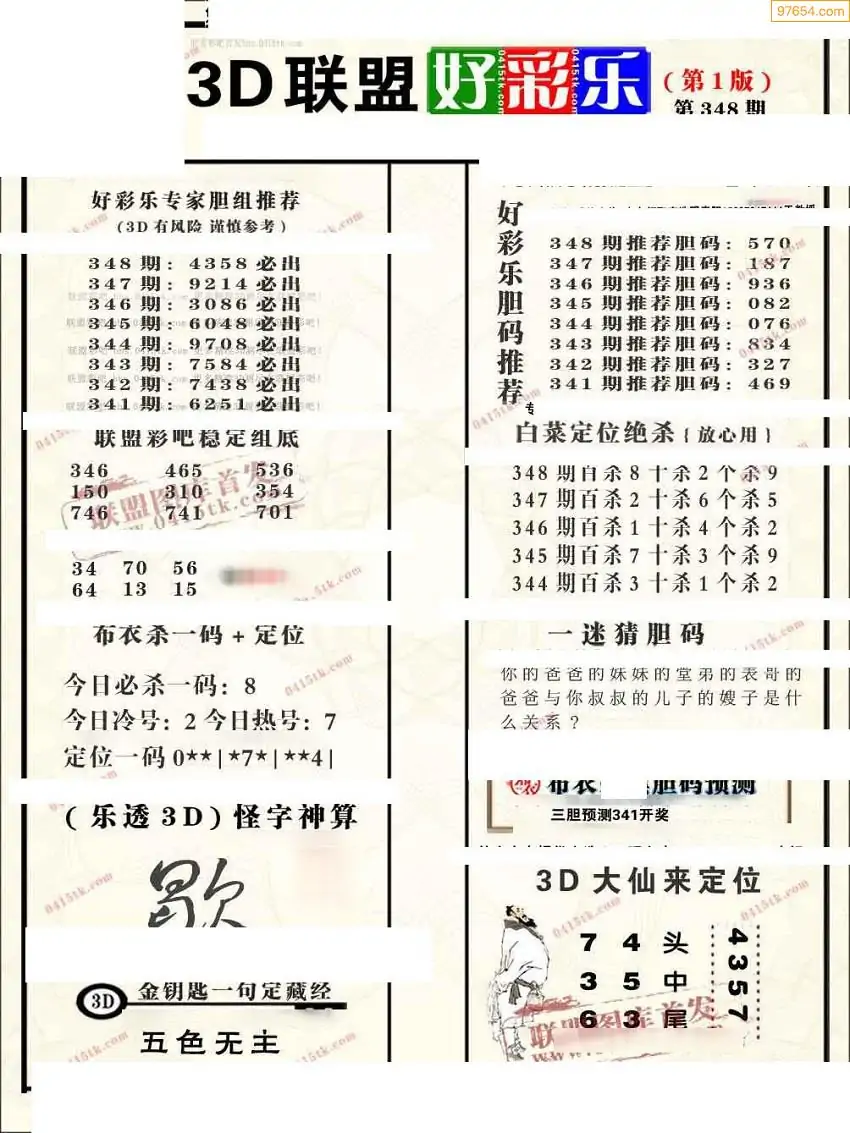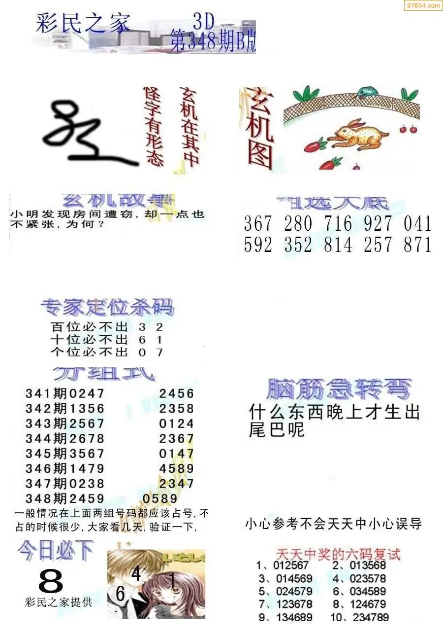 (3)2025348期3D预测总汇全图_福彩3d图谜字谜总汇
