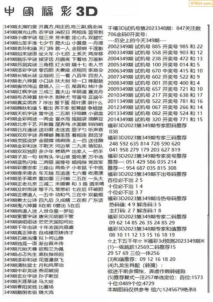(3)2025349期3D预测总汇全图_福彩3d图谜字谜总汇