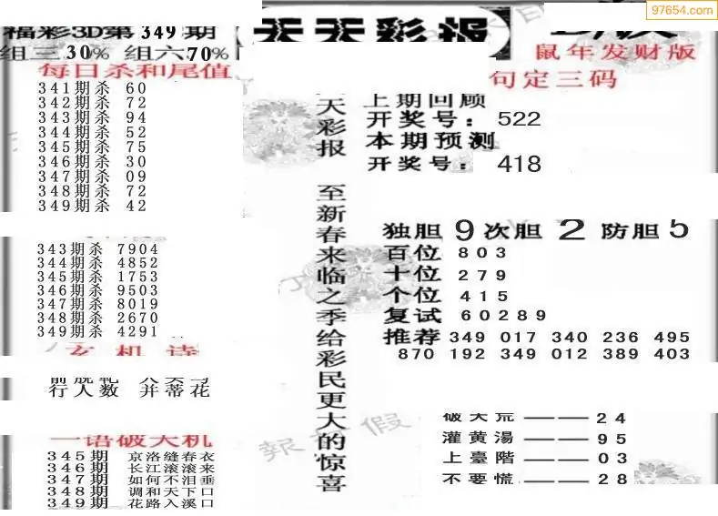 福彩3D002期天牛彩吧套图整合总汇