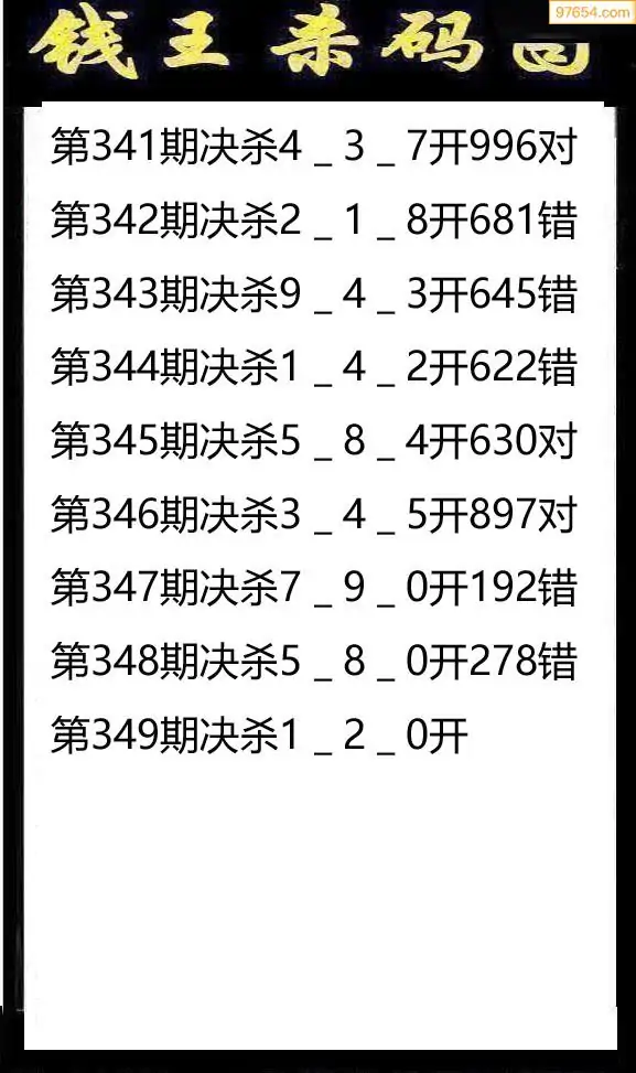 349期97654本站收集杀码出号预测