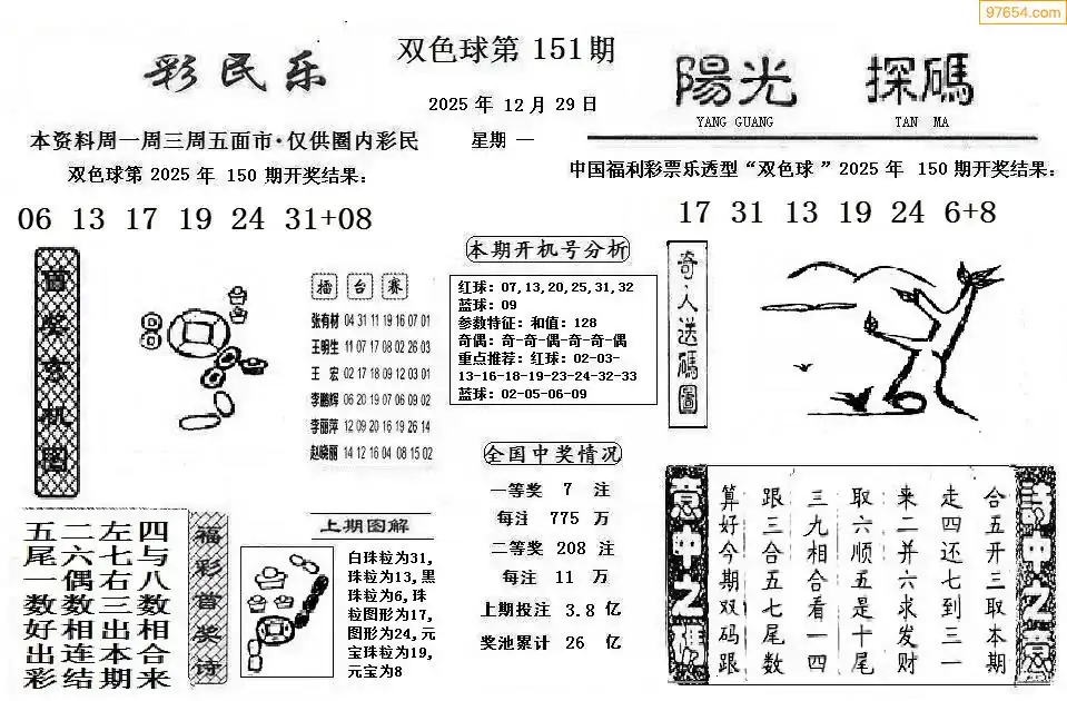 25年双色球151期彩民乐+阳光探码图谜