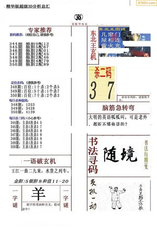 (3)2025349期3D预测总汇全图_福彩3d图谜字谜总汇