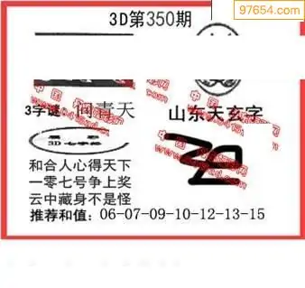 (3)2025350期3D预测总汇全图_福彩3d图谜字谜总汇