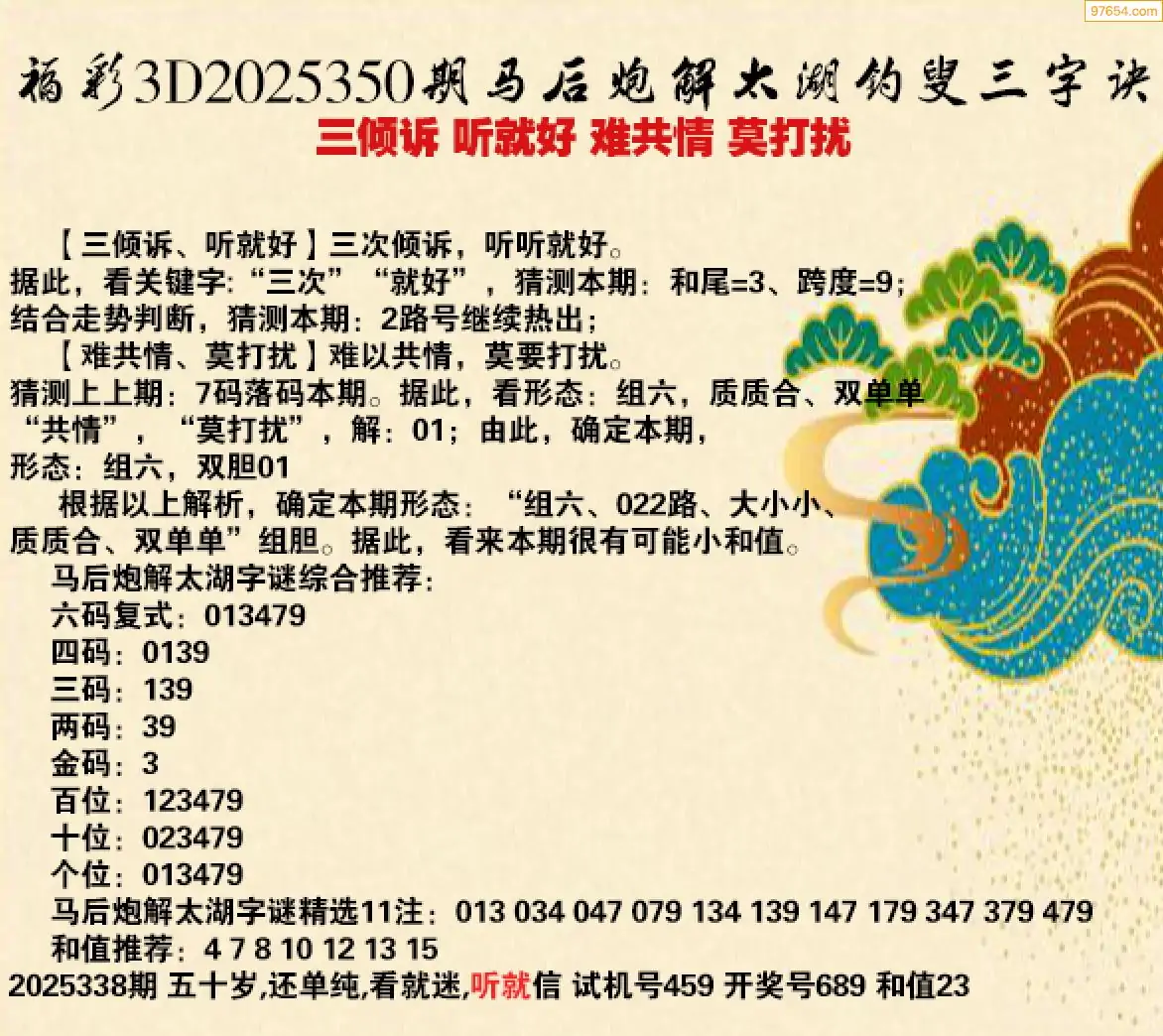25350期福彩3d太湖钓叟三字诀历史汇总