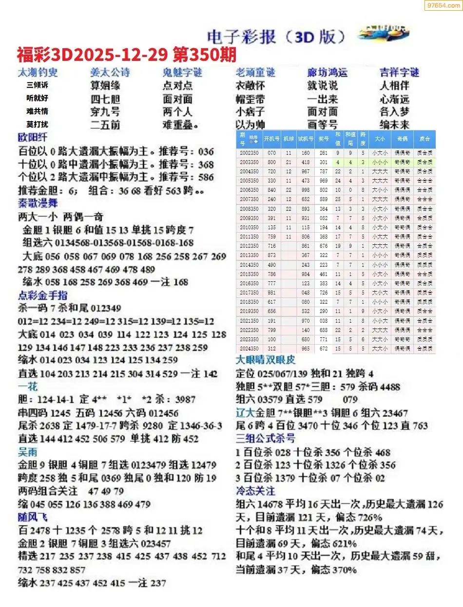 25年350期3D各板块资料整合汇总
