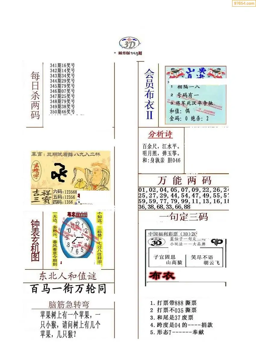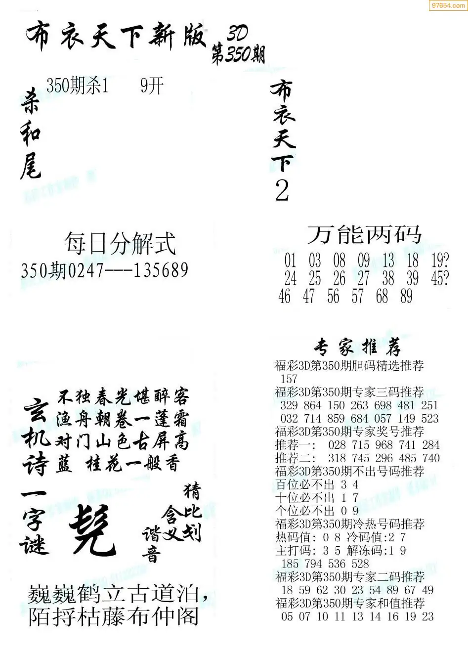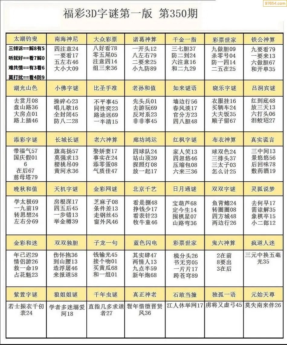 (3)2025350期3D预测总汇全图_福彩3d图谜字谜总汇