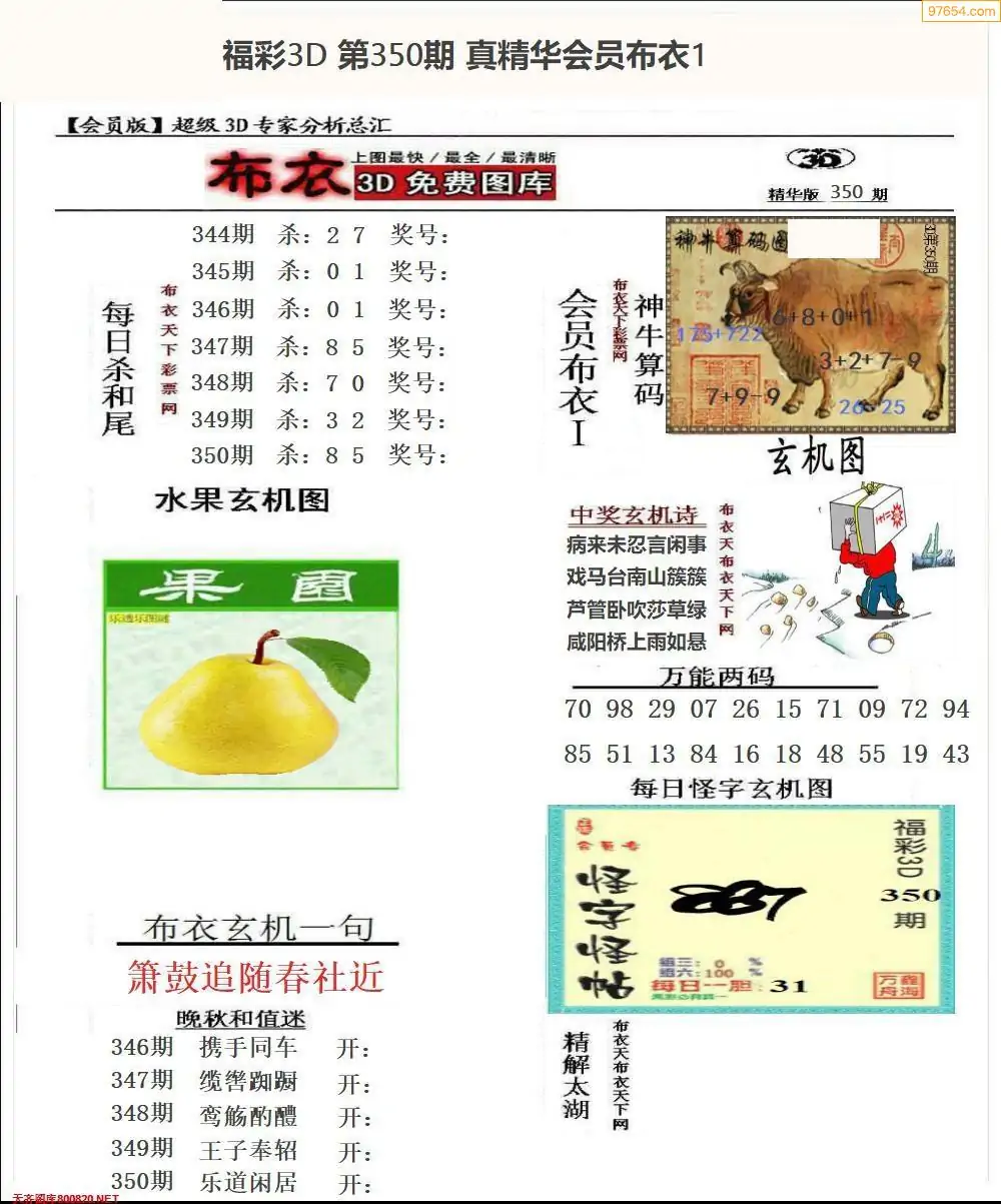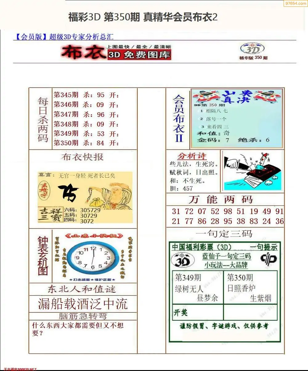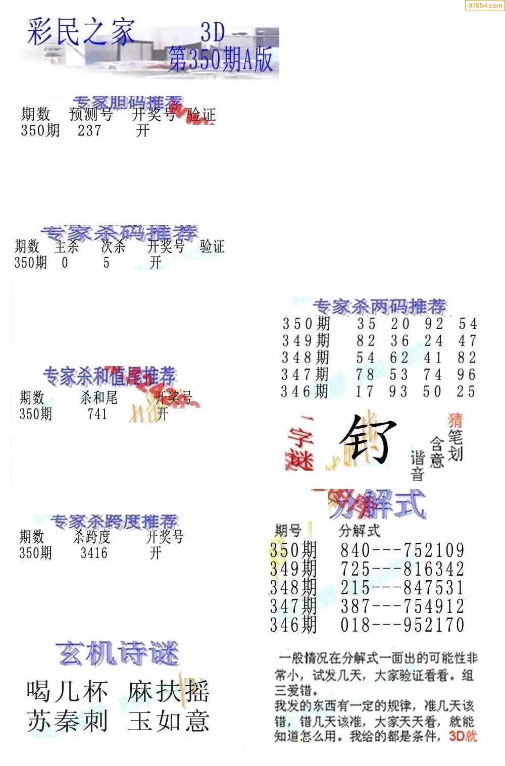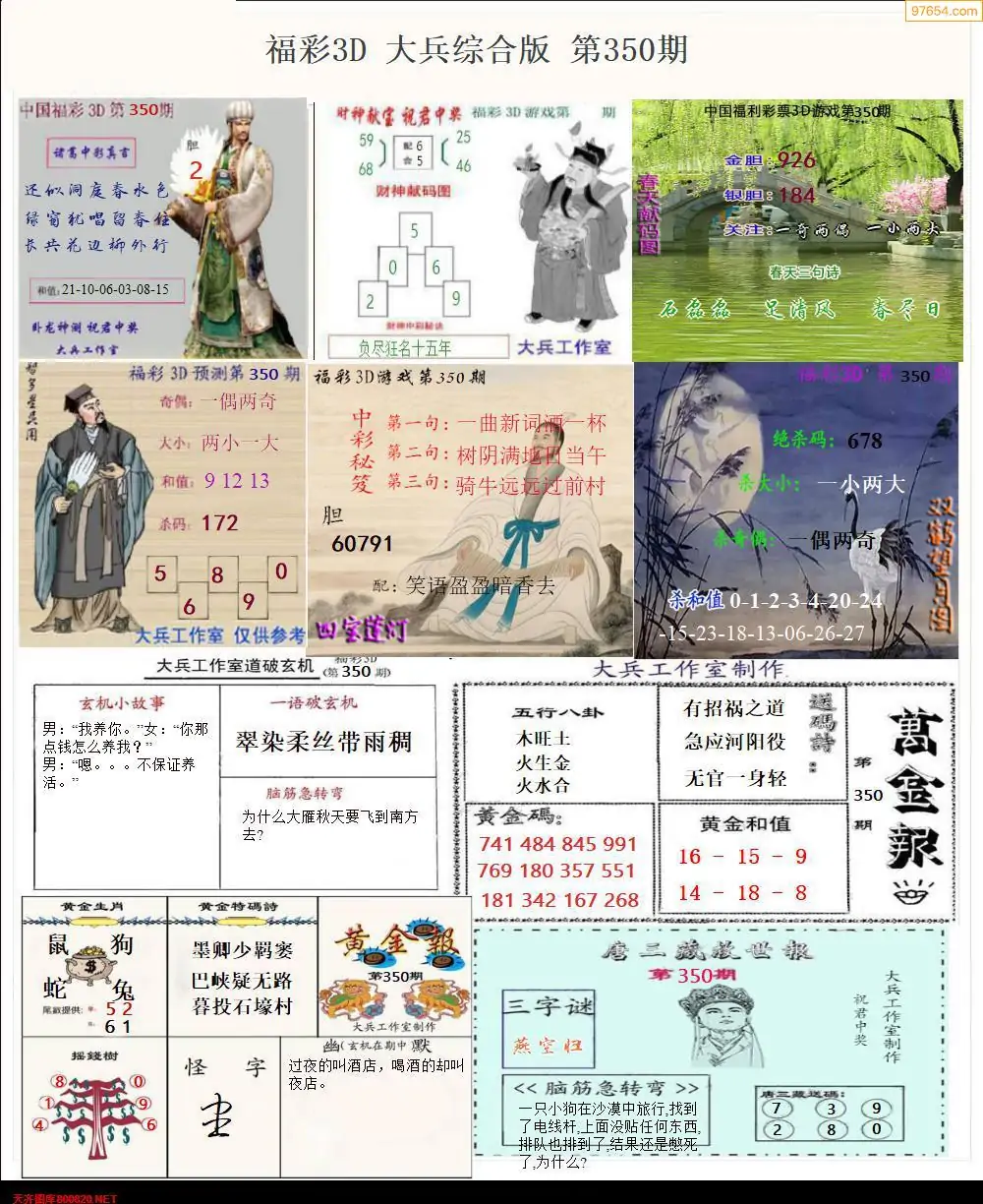 (3)2025350期3D预测总汇全图_福彩3d图谜字谜总汇