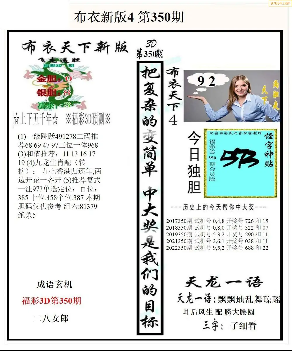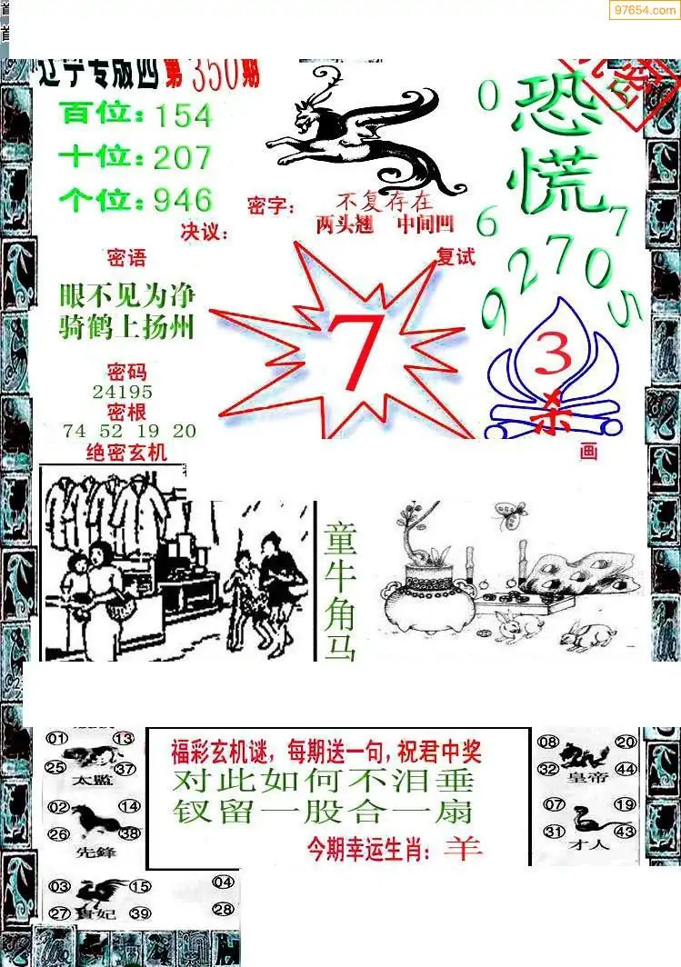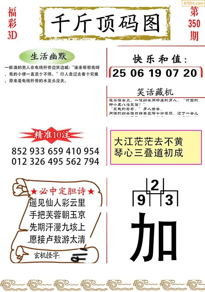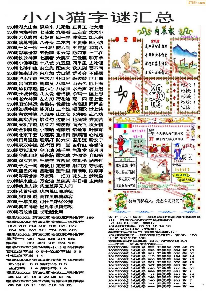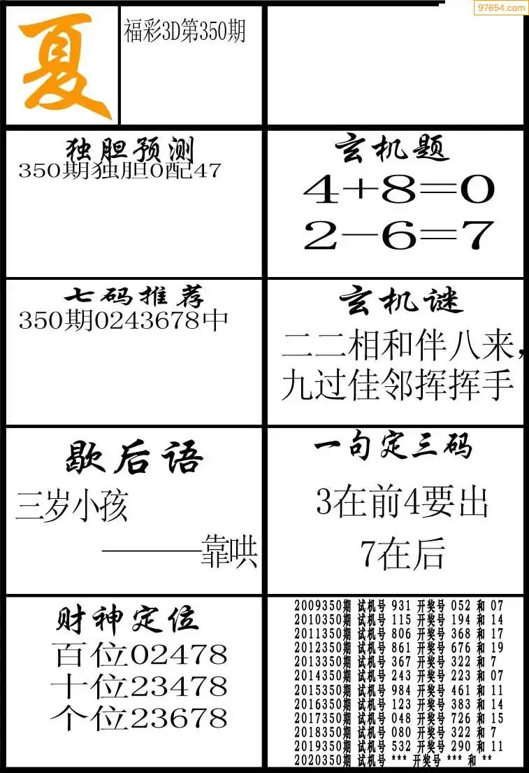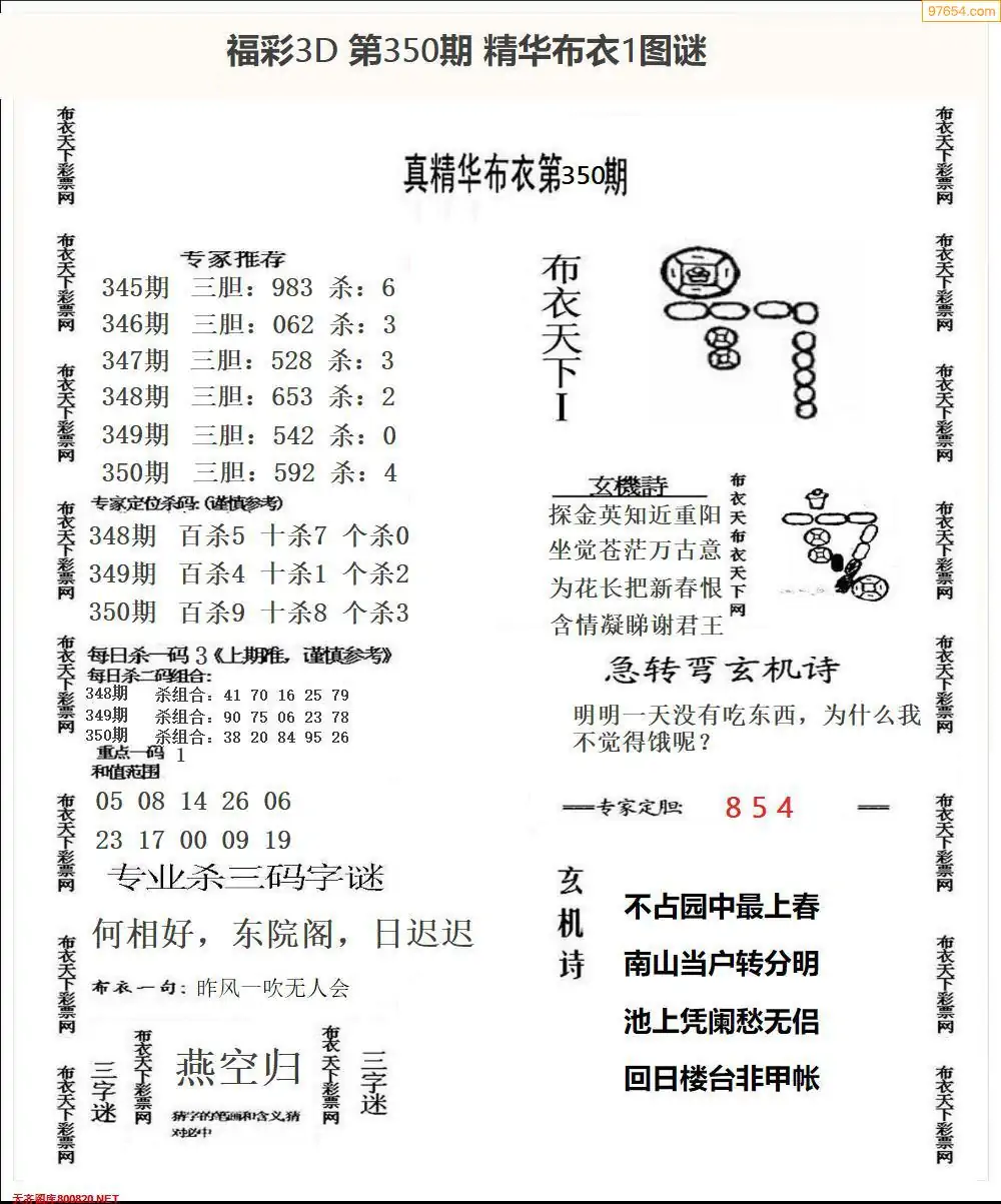 (3)2025350期3D预测总汇全图_福彩3d图谜字谜总汇