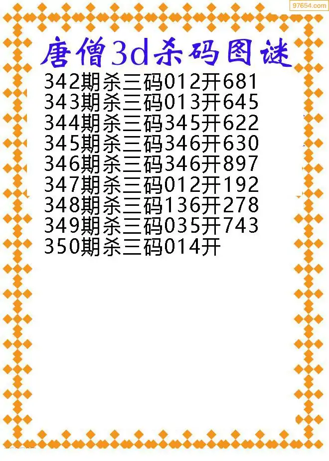 (3)2025349期3D预测总汇全图_福彩3d图谜字谜总汇