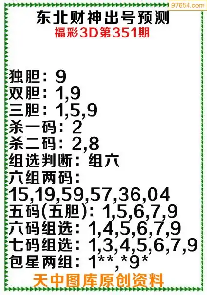 3d原创351期东北财神预测