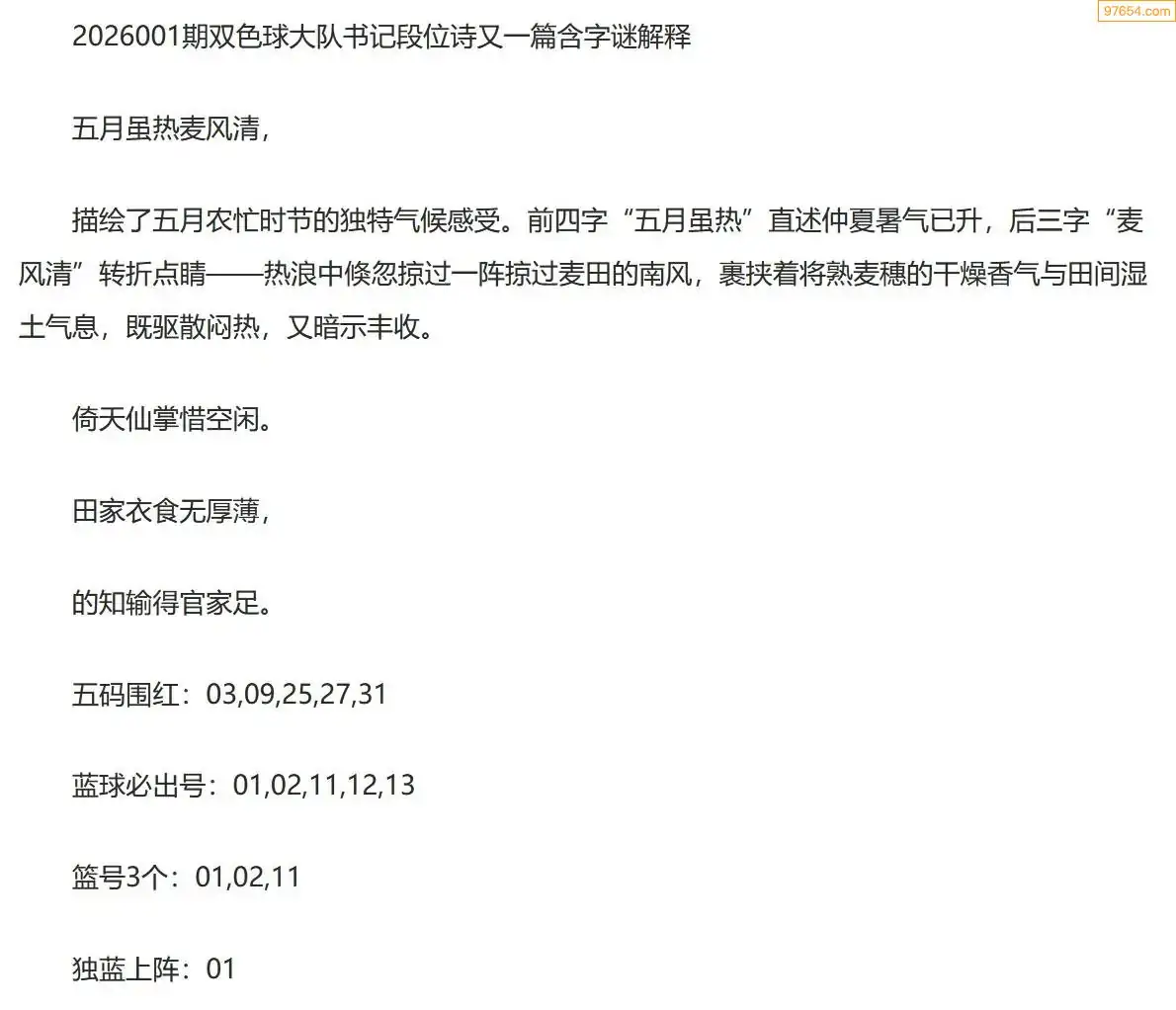 001期牛彩双色球字迷诗迷汇总(天中整理)