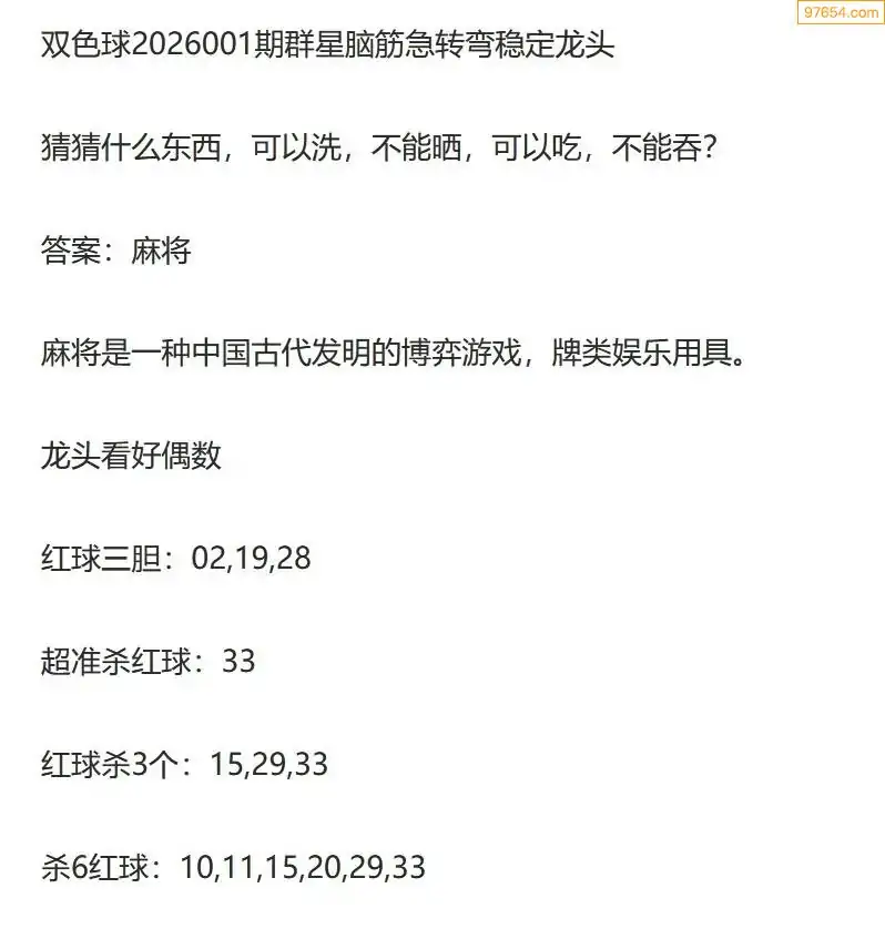 群星双色球26年001期脑筋急转弯龙头谜语