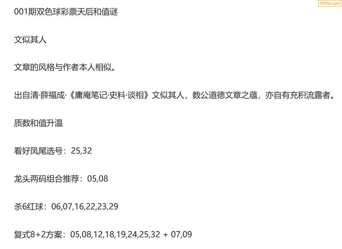 彩票天后双色球26年001期今日和值谜