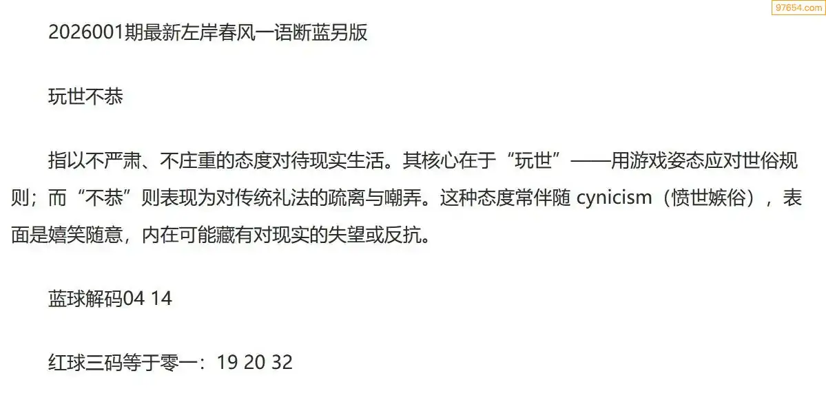 左岸春风另版双色球26年001期一语断蓝