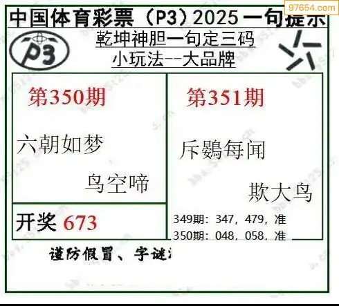 2025年351期北盟天机图+p3仙机图谜 _排三图谜解释汇总