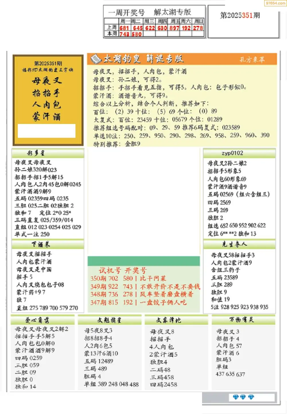 25年351期3d选号彩报图谜画谜