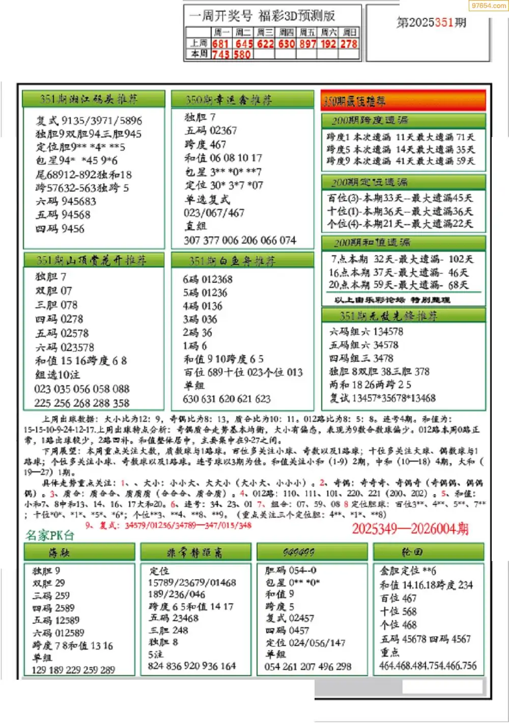 福彩3D351期天牛彩吧套图整合总汇