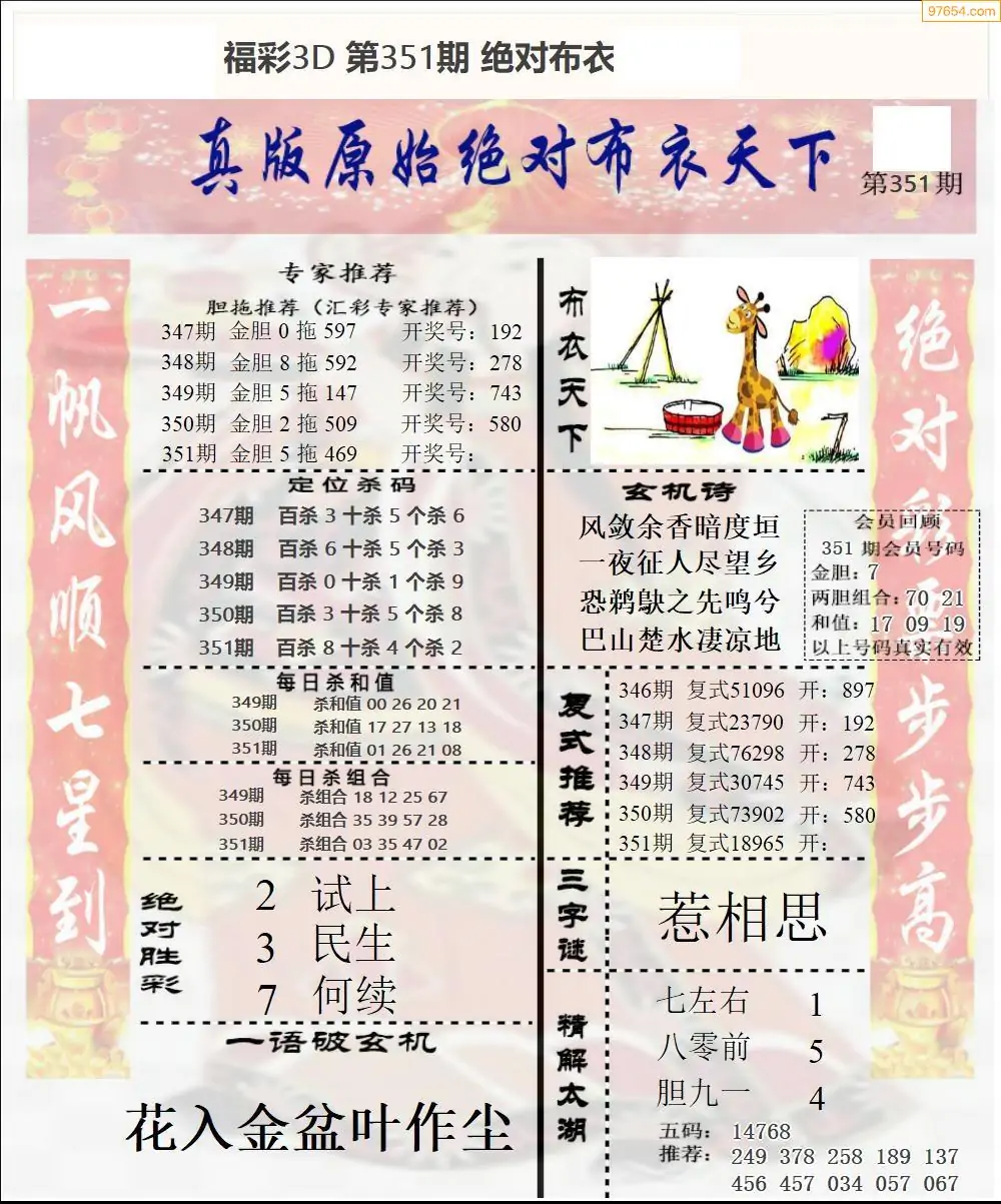 2025年351期福彩3d怪字神贴_今天怪字图谜总汇