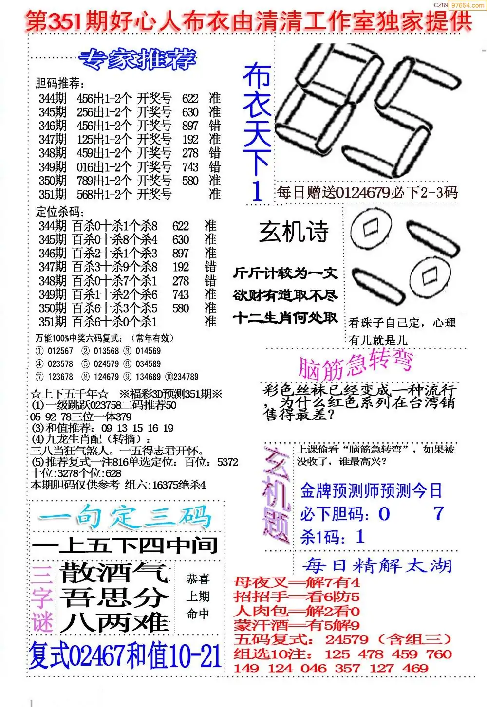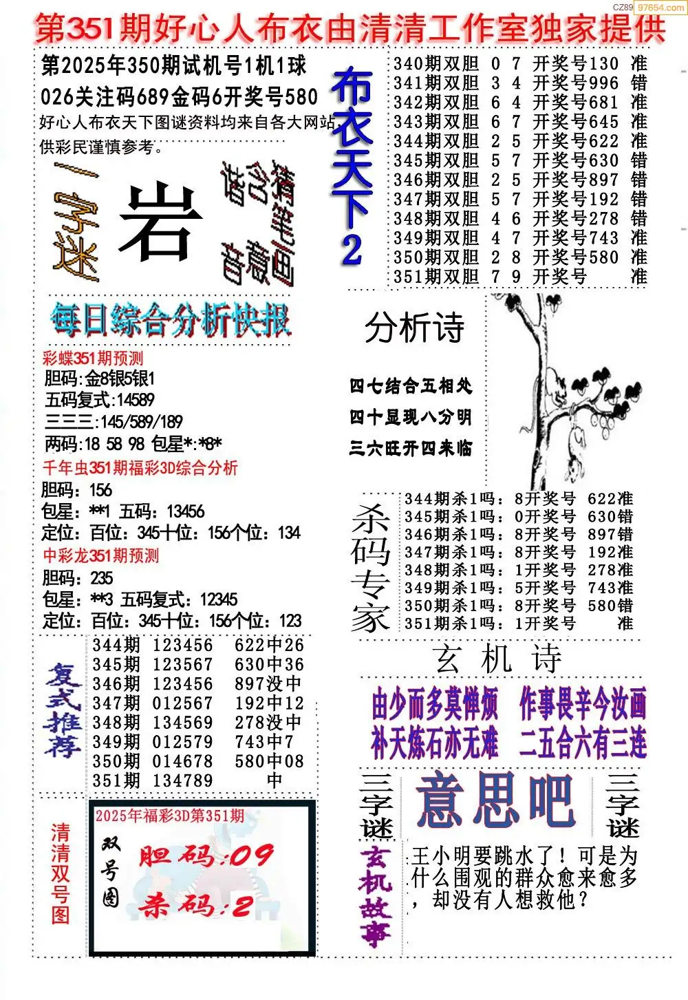 福彩351期3d真精华布衣+布衣早报(转载)