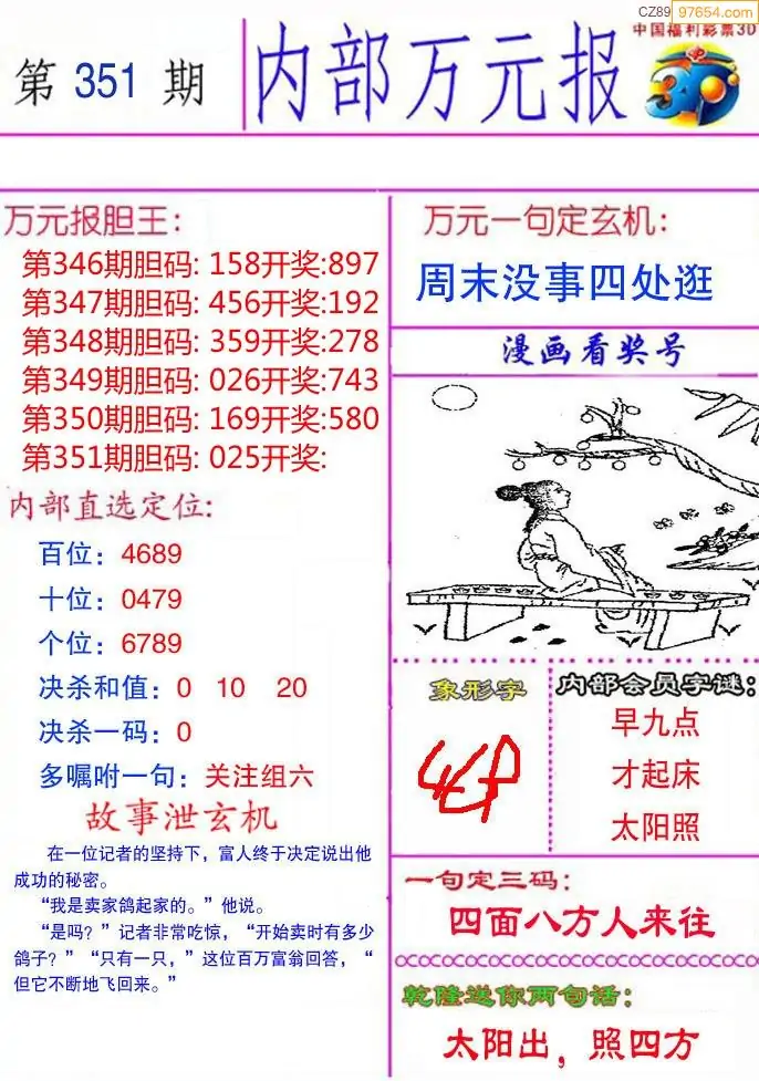 2025年351期福彩3d怪字神贴_今天怪字图谜总汇