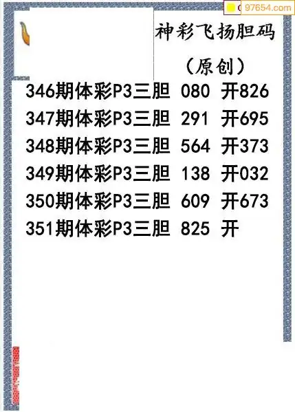 25351期神彩飞扬体彩P3三胆图谜