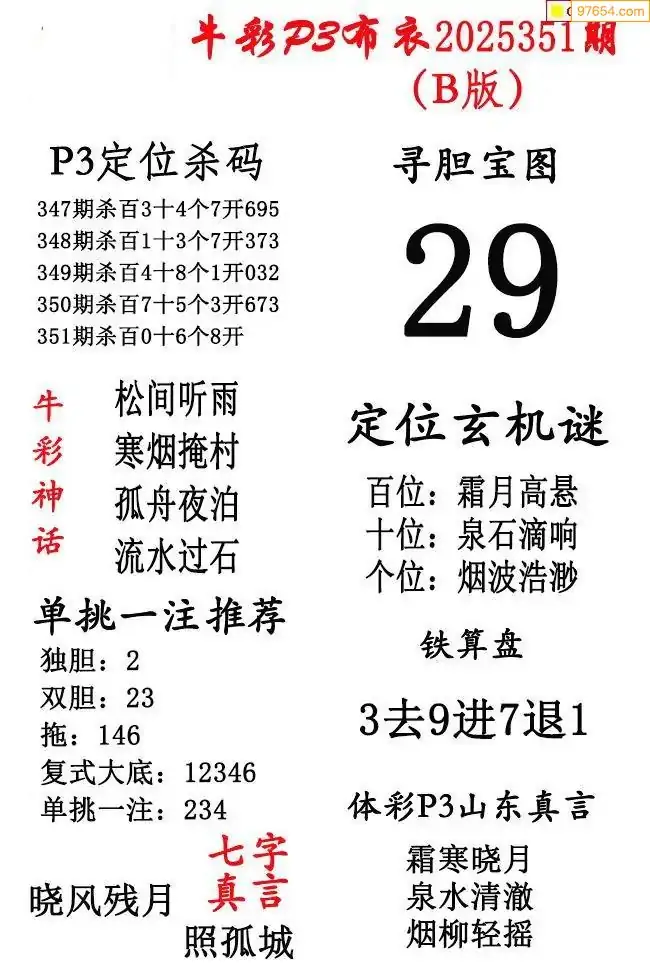 2025年351期北盟天机图+p3仙机图谜 _排三图谜解释汇总