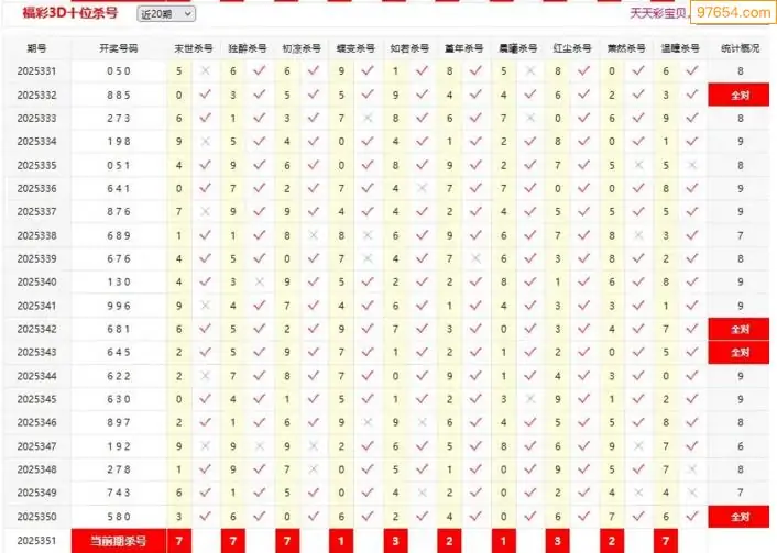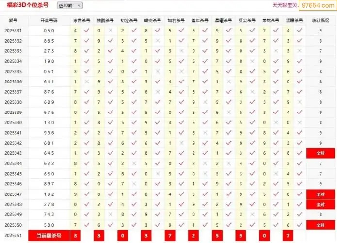 福彩3D25年351期非诚勿扰杀两号 3连中