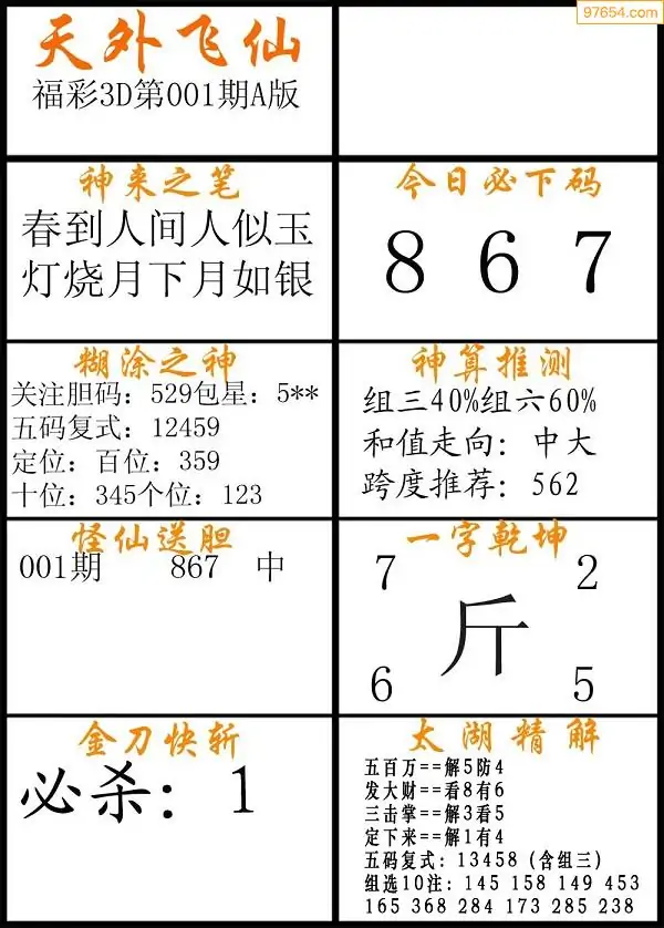 001期福彩3d天外飞仙A版
