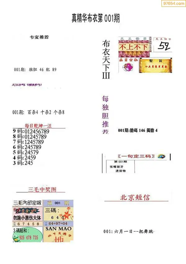 (2)26年001期本期3d图迷汇总_福彩3D图谜总汇图