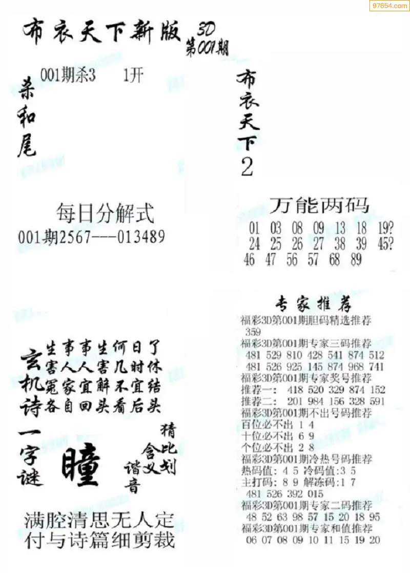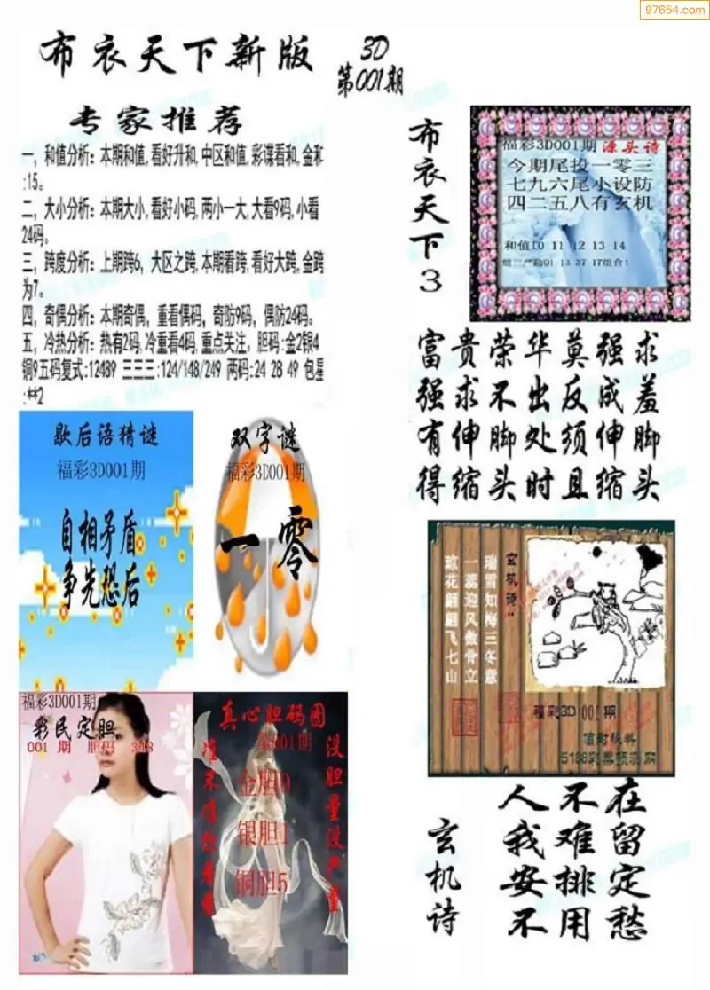 001期真精布衣3d正版布衣123456(原创)