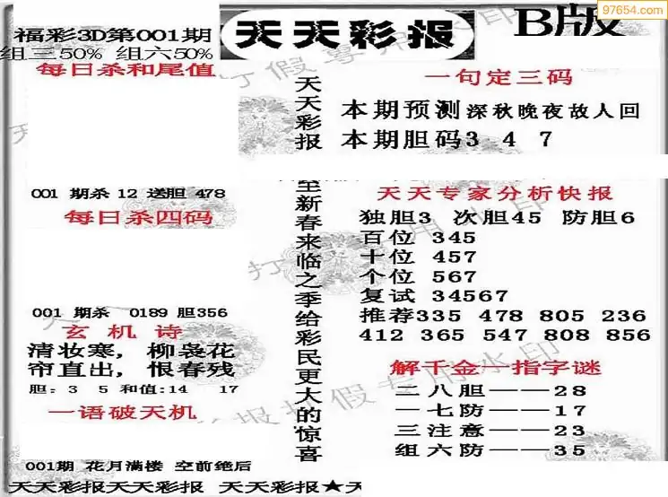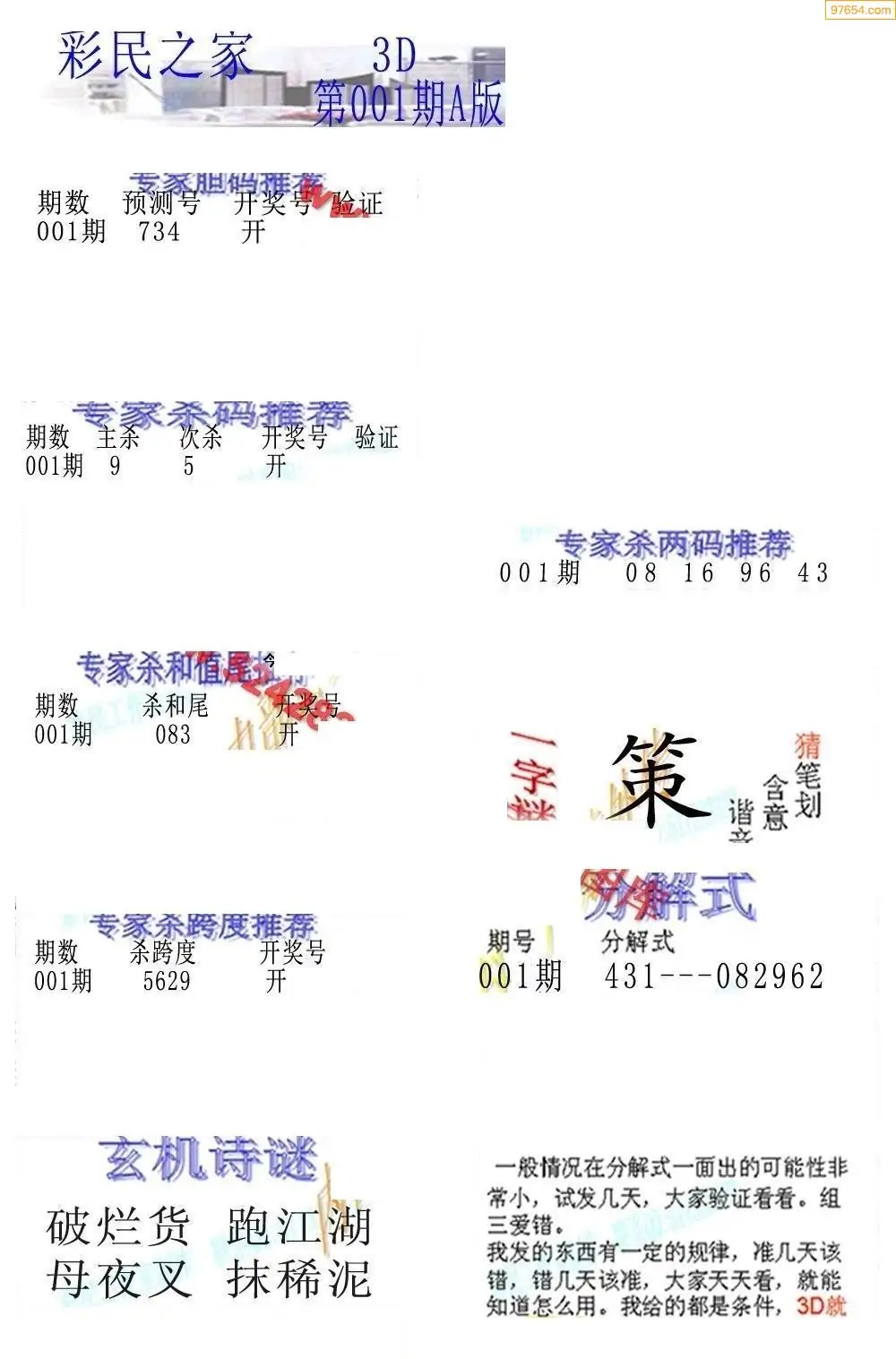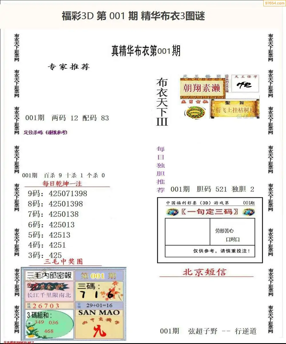 (3)2026001期3D预测总汇全图_福彩3d图谜字谜总汇