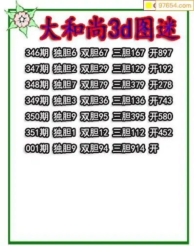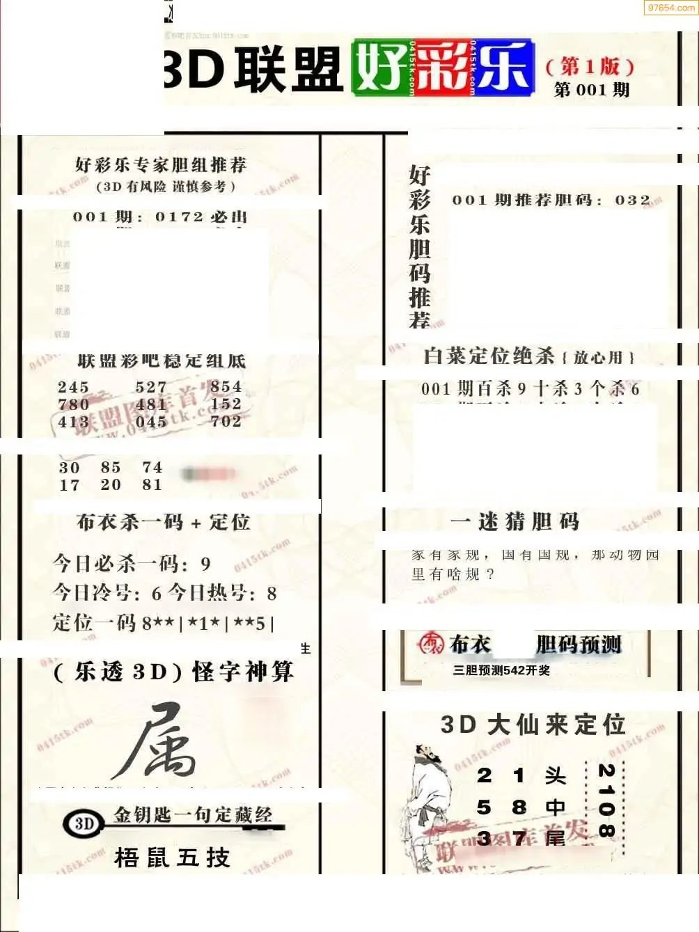(3)2025351期3D预测总汇全图_福彩3d图谜字谜总汇