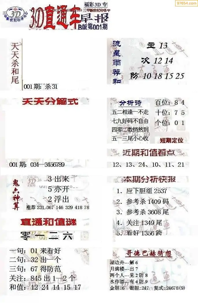 26年001期3d选号彩报图谜画谜