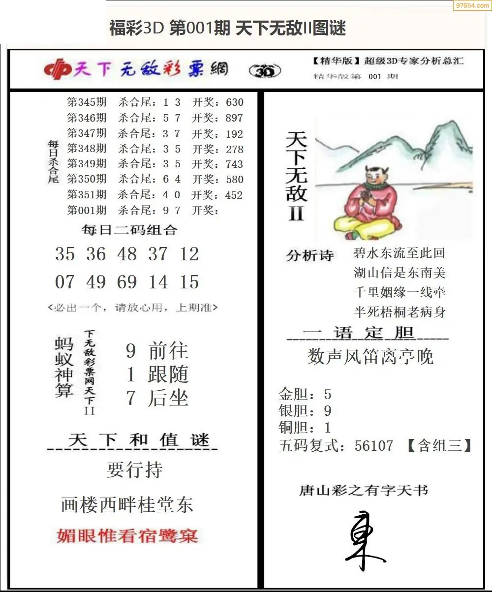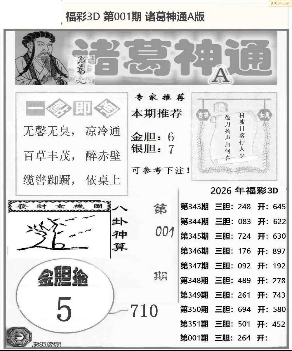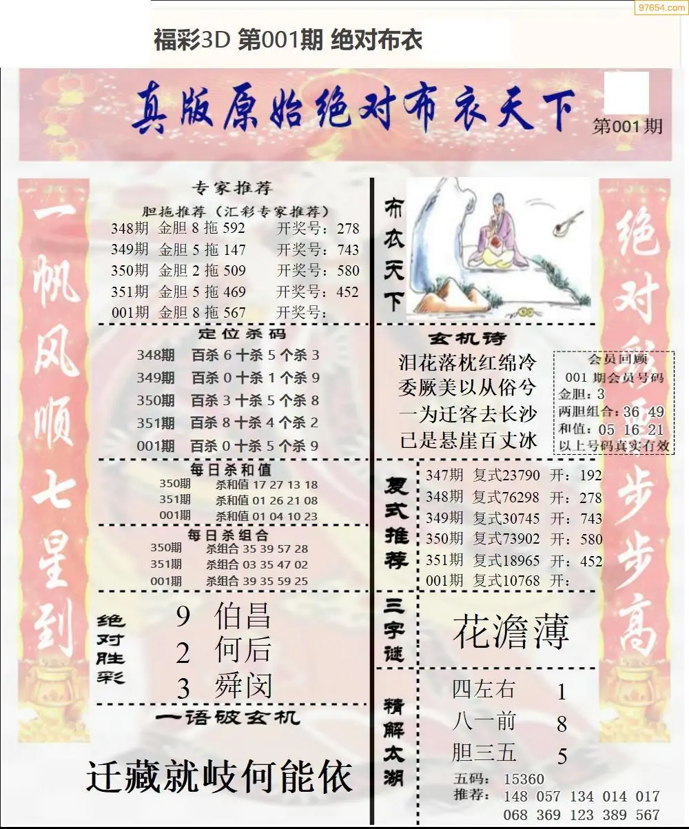 福彩3D001期天牛彩吧套图整合总汇