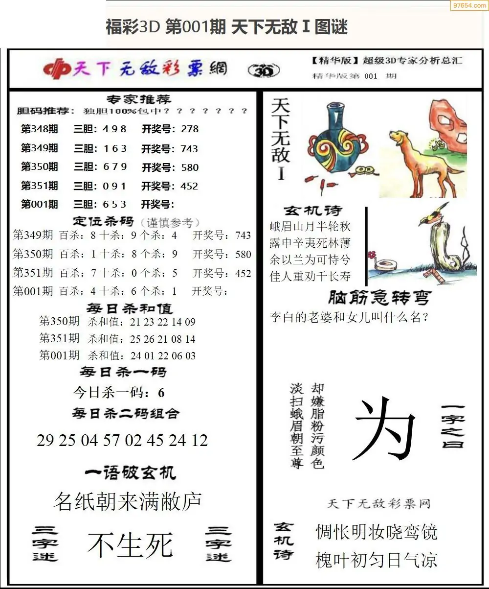 2026年001期福彩3d怪字神贴 _今天怪字图谜总汇