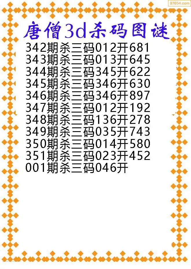 (3)2025351期3D预测总汇全图_福彩3d图谜字谜总汇