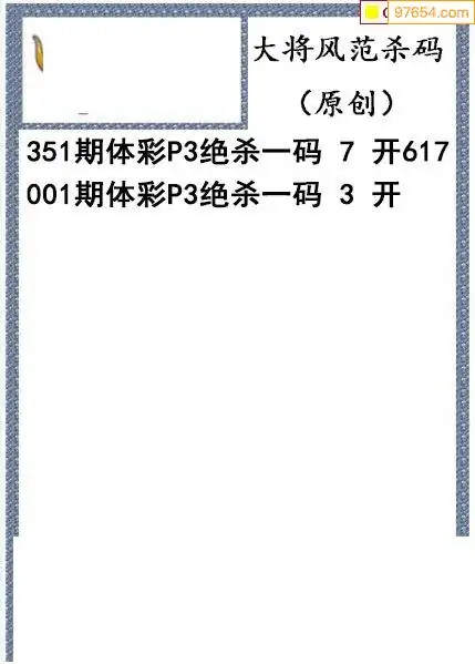26年001期大将风范p3杀码体彩图谜