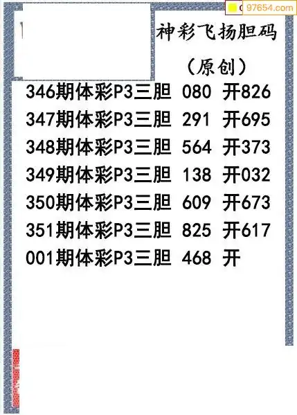 26001期神彩飞扬体彩P3三胆图谜