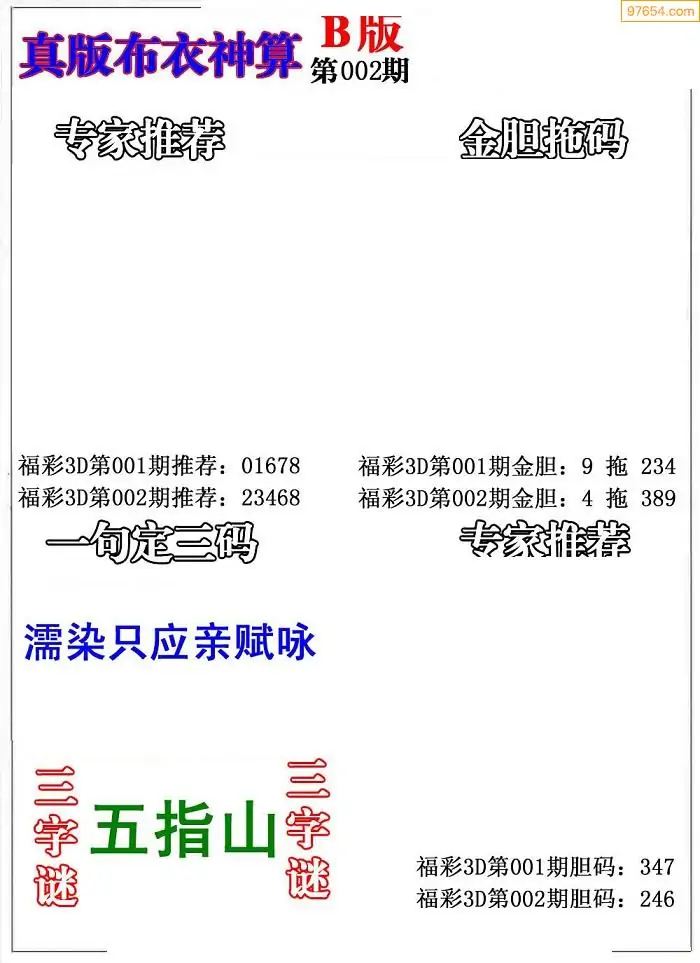 002期真精布衣3d正版布衣123456(原创)