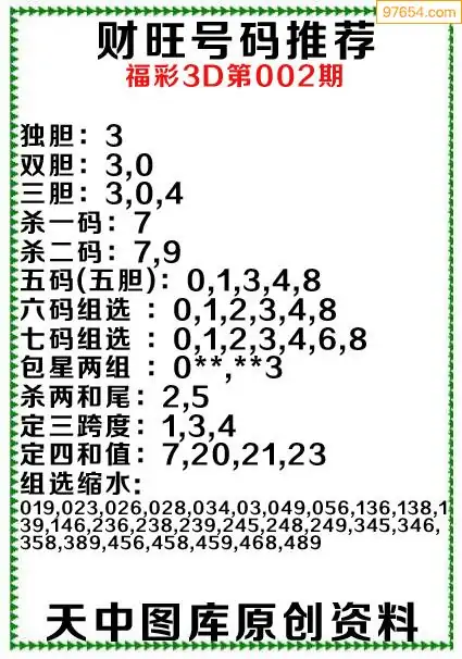 3D原创002期旺财出号推荐