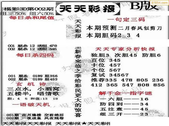 福彩3D002期天牛彩吧套图整合总汇