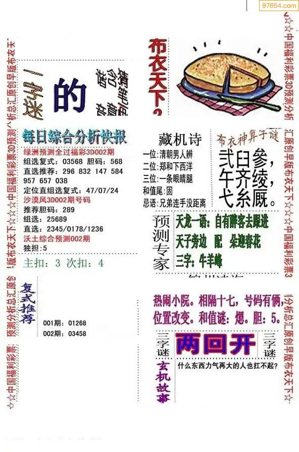 福彩3D002期天牛彩吧套图整合总汇
