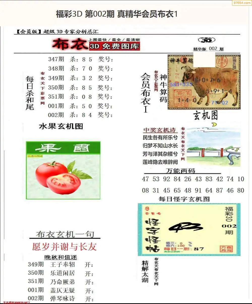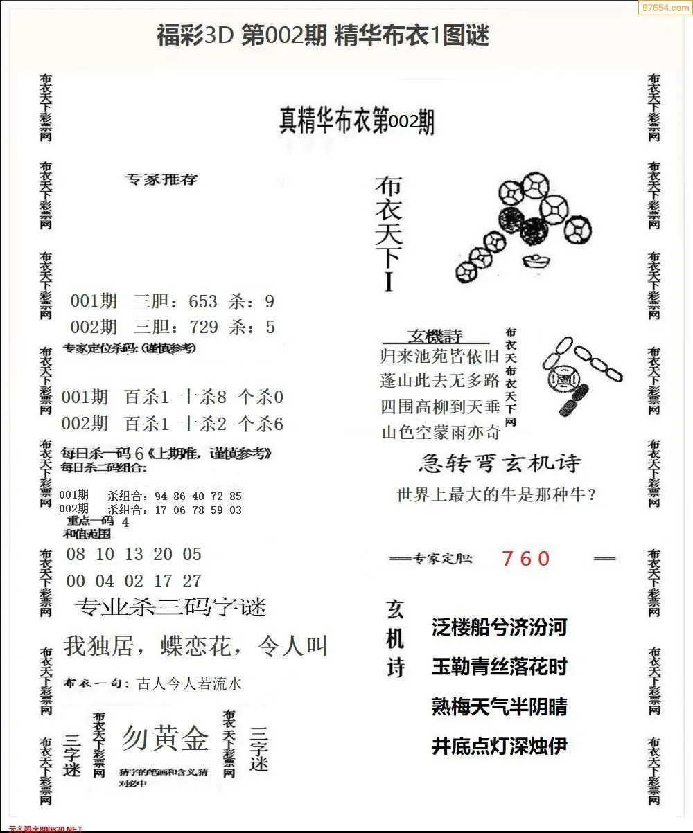 002期真精布衣3d正版布衣123456(原创)
