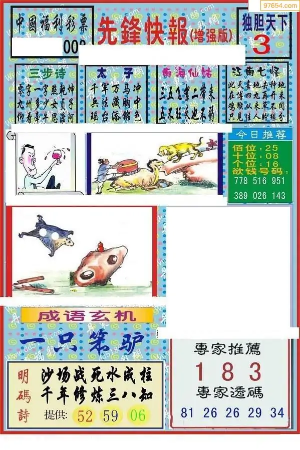 (8)26年001期今日3d各类彩报汇总
