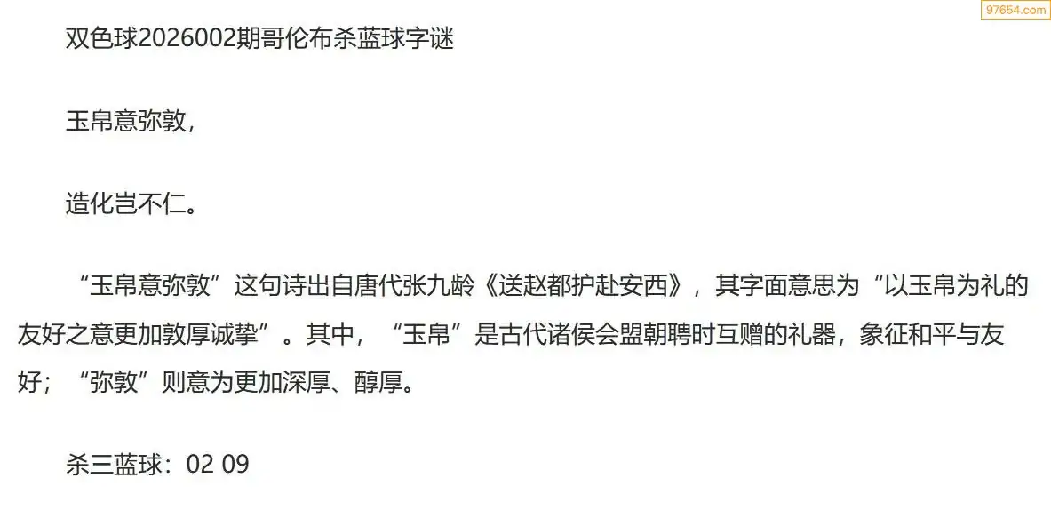 哥伦布双色球26年002期一句杀蓝球字迷
