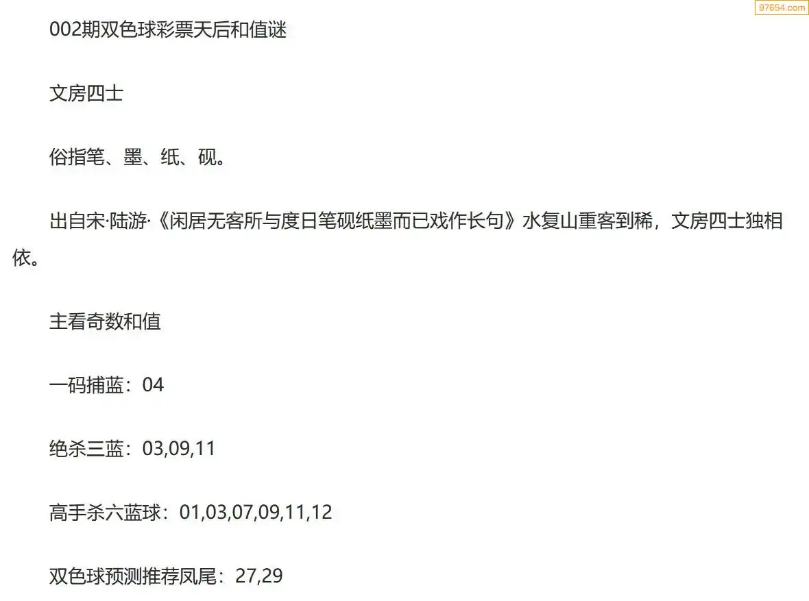26002期双色球天中网今晚字谜总汇