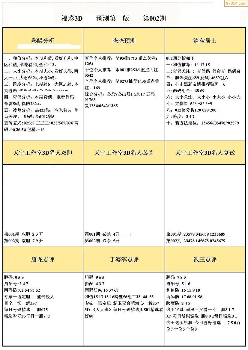 (8)26年001期今日3d各类彩报汇总
