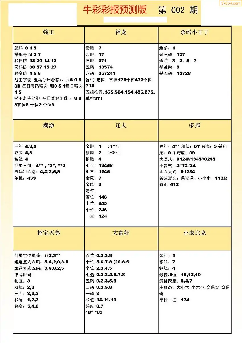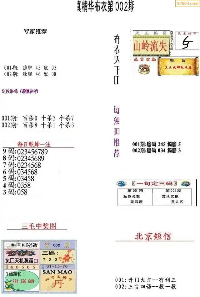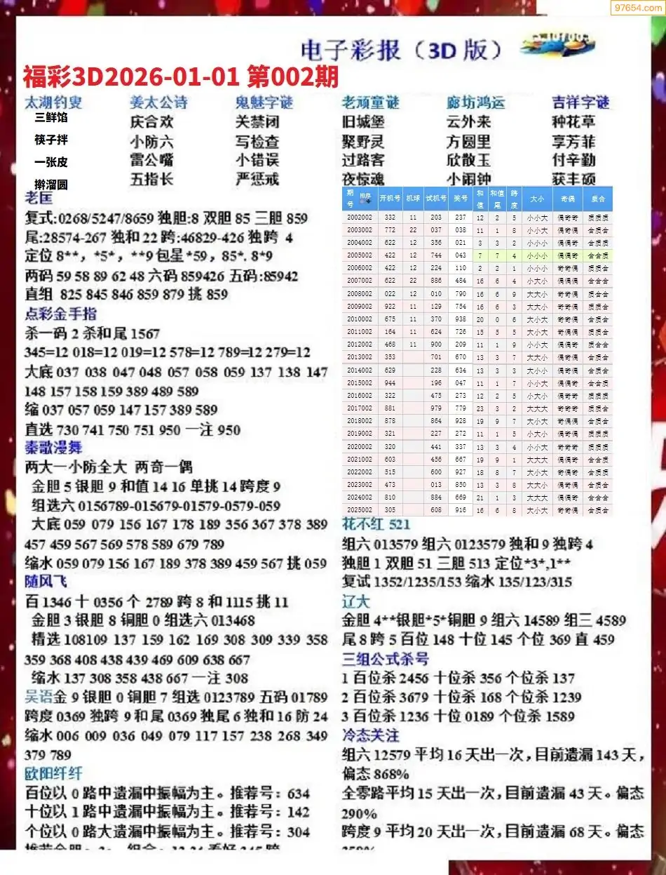 (8)26年002期今日3d各类彩报汇总
